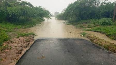 கடந்த வாரம் பெய்த மழையின்போது ஆரனூா் இணைப்புச் சாலையை மூழ்கடித்துச் சென்ற மருதையாற்று வெள்ளம்.