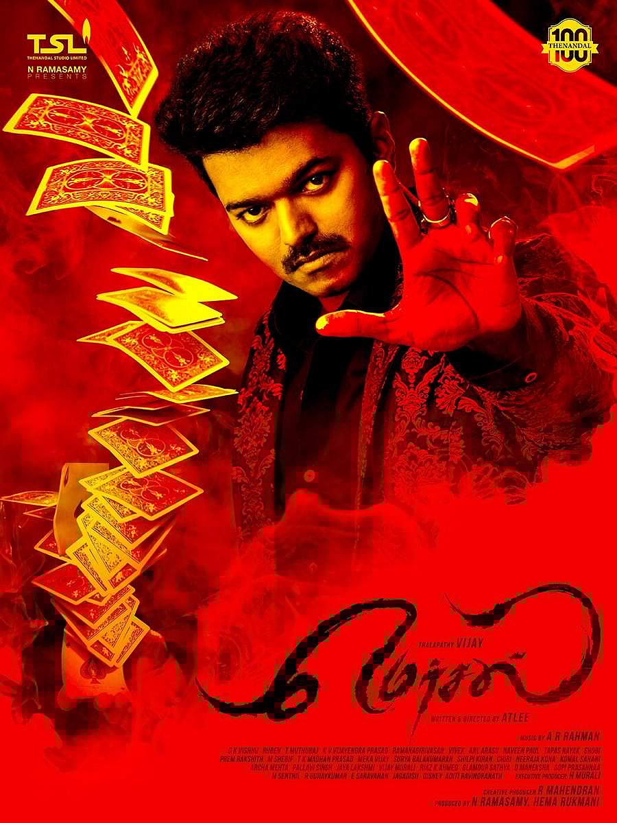 மெர்சல் படத்தின் முதல் பார்வை போஸ்டர்களில் பாகுபலி இயக்குநர் ராஜமெளலியின் தந்தை விஜயேந்திர பிரசாத்தின் பெயர்...