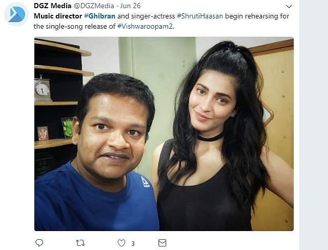 ஒற்றைப்பாடல் வெளியீட்டு நிகழ்வில் நடனமாட ரிகர்ஸலில் ஈடுபட்டிருக்கும் ஸ்ருதிஹாசனின் புகைப்படத்துடன் ஜிப்ரான் இதைப் பகிர்ந்துள்ளார்.