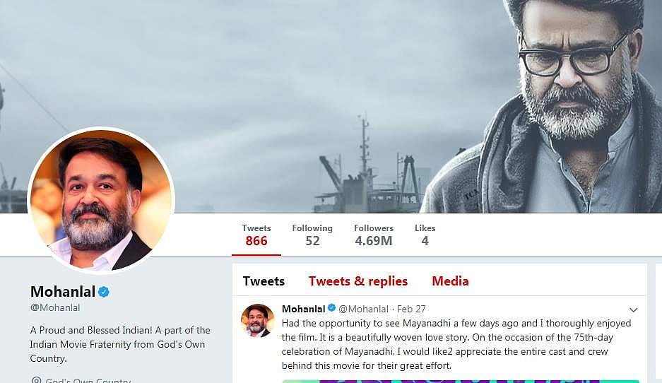 அண்மையில் ட்விட்டரில் பின் தொடர்பவர்கள் எண்ணிக்கையில் ரஜினியை முந்தியிருக்கிறார் மலையாள சூப்பர் ஸ்டார் மோகன்லால்.