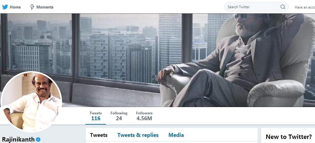 ட்விட்டரில் சூப்பர் ஸ்டார் ரஜினியை பின்தொடர்பவர்களின் எண்ணிக்கை தற்போது 4 லட்சத்து 56 ஆயிரமாக உள்ளது உள்ளது.