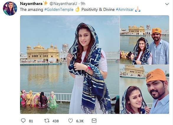 இந்த முறை அமிர்தசரஸ் செல்கையில் தன் காதலர் விக்னேஷ் சிவனை உடன் அழைத்துக் கொண்டு பயணித்தார். இருவரும் வழிபாடுகளை முடித்தபின் புகைப்படம் எடுத்துக் கொண்டனர்.