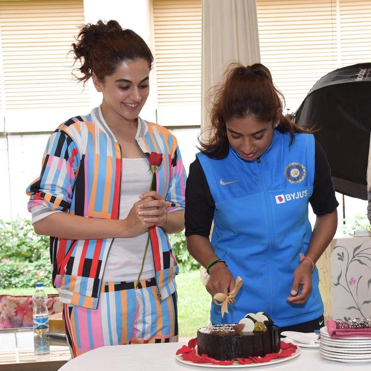 மிதாலி ராஜின் பிறந்தநாளன்று கேக் வெட்டி கொண்டாடி மகிழ்ந்த தருணங்களின் புகைப்படங்களை ட்விட்டரில் வெளியிட்டுள்ளார் தாப்சி.