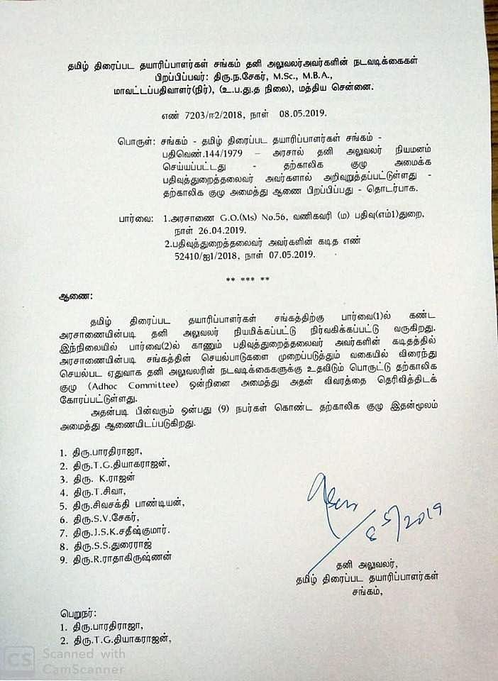 தமிழ் திரைப்பட தயாரிப்பாளர்கள் சங்கத்தை வழிநடத்த இயக்குநர் பாரதிராஜா உள்ளிட்ட 9 பேர் கொண்ட 'அட் ஹாக்' குழுவை நியமித்து தமிழக அரசு நடவடிக்கை எடுத்துள்ளது.