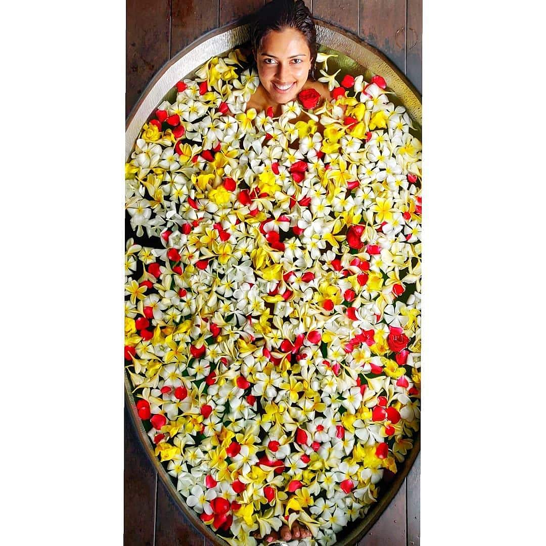 முதுகில் அசத்தலான டாட்டூ தெரிய பூக்கள் நிறைந்த தண்ணீரில் குளிப்பது போன்றுள்ள அந்தப் படத்தை பார்த்த நெட்டிசன்கள் இன்ப அதிர்ச்சியில் திகைத்துள்ளனர்.