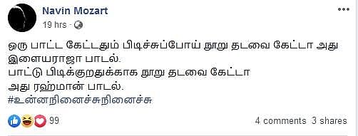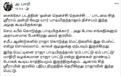 சமூகவலைத்தளங்களில் இந்தப் பாடல் குறித்து பலரும் பாராட்டி எழுதியவற்றிலிருந்து சில பதிவுகள்...