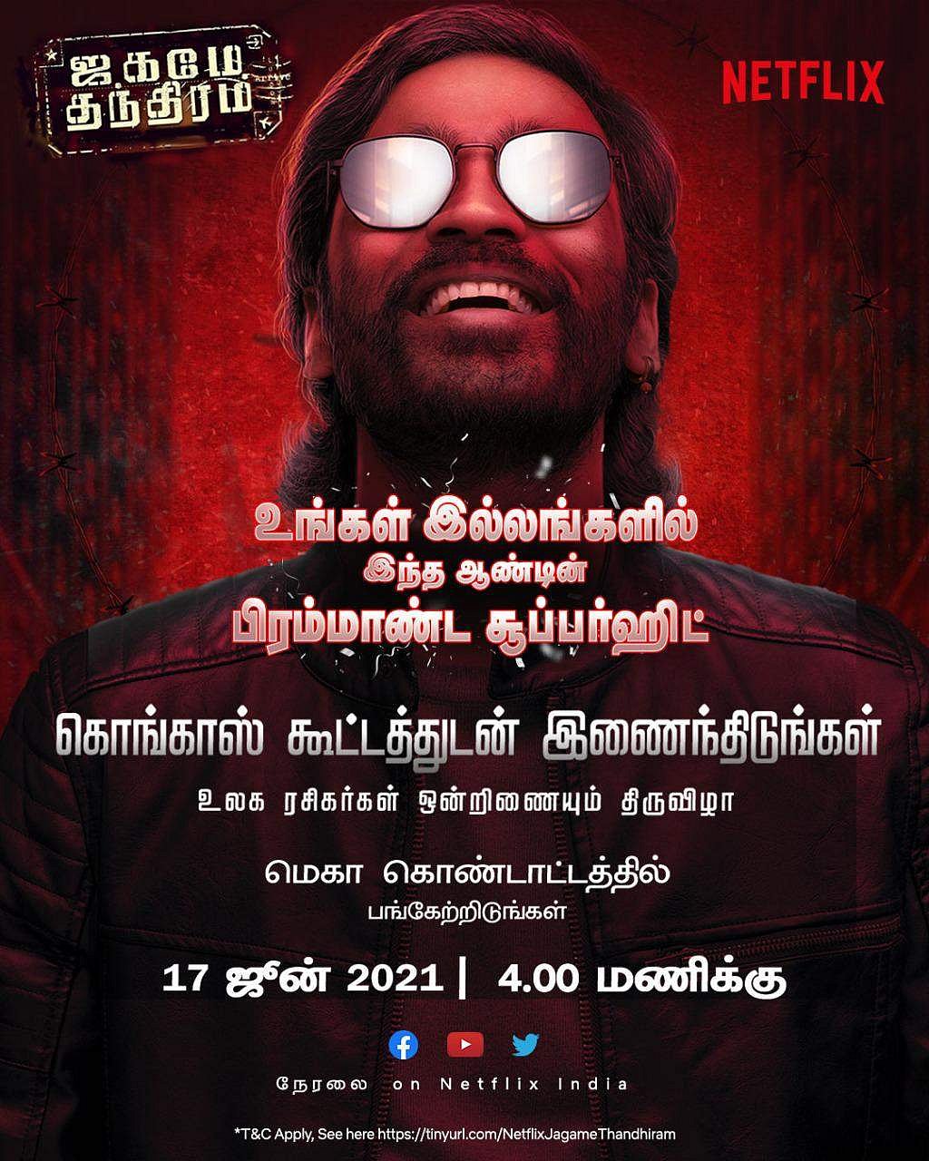 ஜகமே தந்திரம் படம் நெட்பிளிக்ஸ் ஓடிடி தளத்தில் வெளியாகவுள்ளதால் சமூகவலைத்தளங்கள் வழியாக ரசிகர்களுடன் படக்குழுவினர் உரையாடவுள்ளார்கள்.