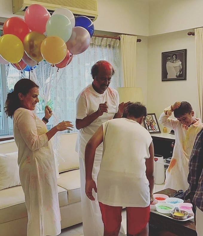 தந்தை ரஜினிகாந்த் மற்றும் மகன்களுடன் ஐஸ்வர்யா.
