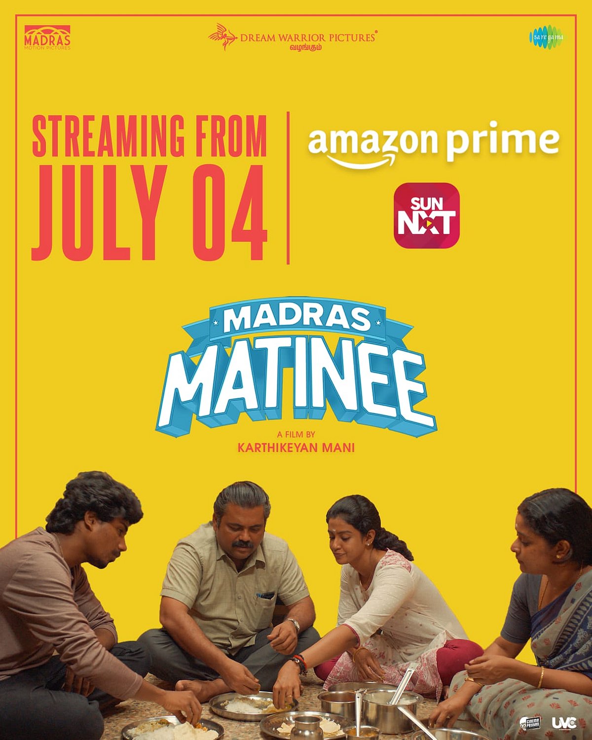 மெட்ராஸ் மேட்னி திரைப்படம் சன் நெக்ஸ்ட் ஓடிடி தளத்தில் வரும் ஜூலை 4 ஆம் தேதி வெளியாகும் என்று அதிகாரபூர்வமாக அறிவிக்கப்பட்டது.