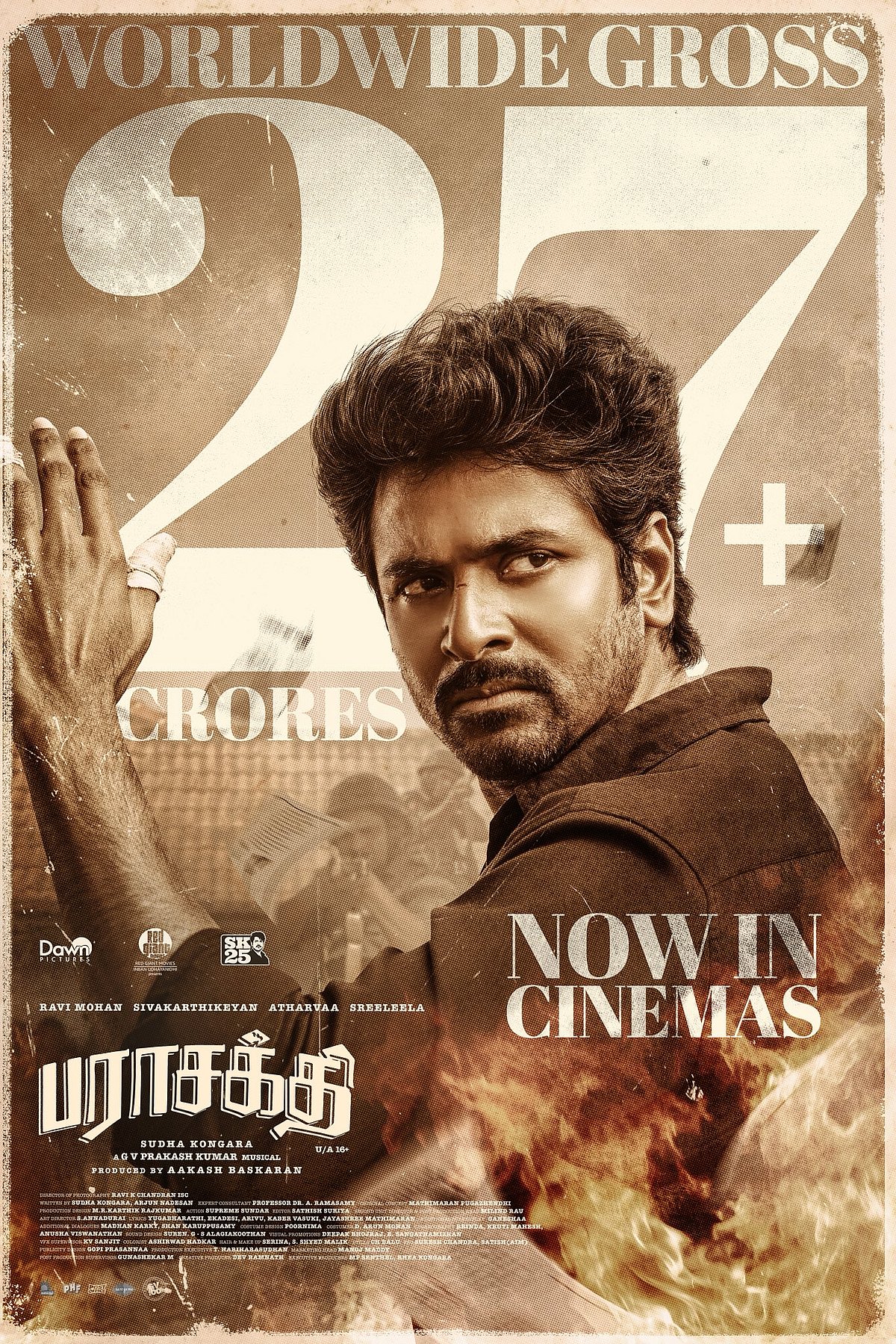 இந்த நிலையில், பராசக்தி முதல் நாள் வசூலாக உலகளவில் ரூ. 27 கோடிக்கும் அதிகமாக வசூலித்துள்ளதாக அதிகாரப்பூர்வமாக அறிவிக்கப்பட்டுள்ளது.