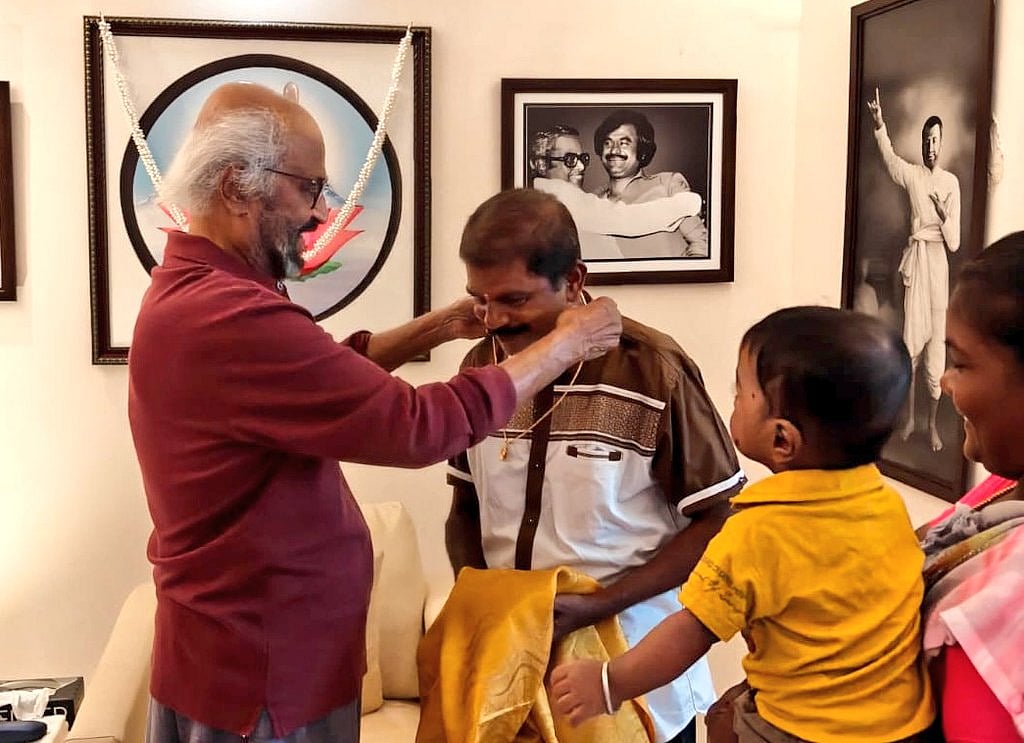 நடிகர் ரஜினிகாந்த் தன் ரசிகரை நேரில் அழைத்து தங்கச் சங்கிலி பரிசளித்துள்ளார்.