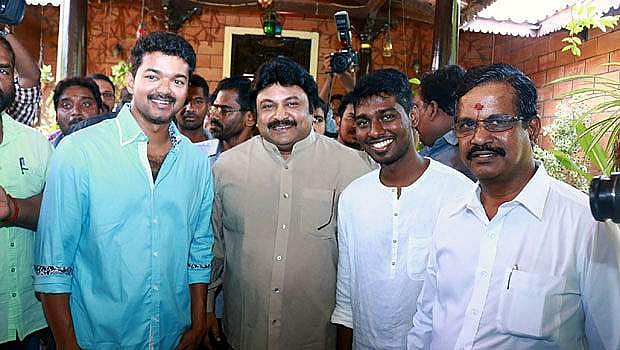 2015, ஜுன் 26 அன்று படத்துக்கு சென்னையிலுள்ள கேரளா ஹவுஸில் பூஜை நடக்கிறது. அன்றைய தினமே அட்லியைப் பாராட்டி மகிழ்கிறார் தயாரிப்பாளர் தாணு. அப்போது அவர் பேசியது அதீதமாகத் தெரிந்தாலும் அட்லியின் திறமையைச் சரியாக எடை போட்டுள்ளார் என்றுதான் கூறவேண்டும். அன்று தாணு பேசியதாவது: