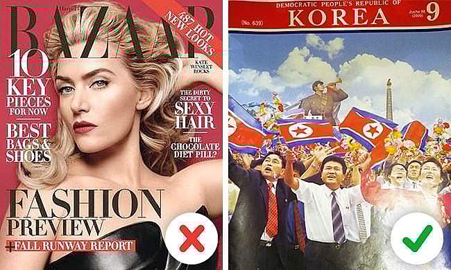 வட கொரியாவின் பிரச்சார இயந்திரம் அனைத்து வகையான வெளிநாட்டு ஊடகங்களுக்கும் தடை விதித்துள்ளது. அரசாங்கத்திலும், அரசால் நியமிக்கப்பட்ட சிறப்பு நிறுவனங்களும், அந்நாட்டு பத்திரிகைகளில் அச்சிடப்பட்டவற்றை கண்காணிக்கும். லைஃப்ஸ்டைல் சம்மந்தப்பட்ட பத்திரிகைகள் அங்கு கிடையாது, வட கொரியாவில் மக்களுக்குப் படிக்கக் கிடைப்பவை கல்வி மற்றும் அது சார்ந்த விஷயங்கள் அல்லது அரதப் பழசான அரசியல் விஷயங்கள் மட்டுமே.