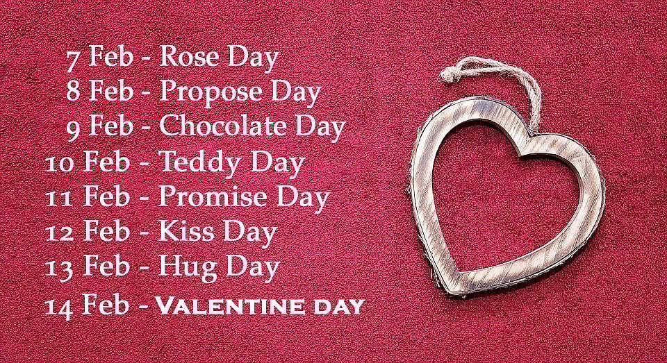அந்தந்த நிறத்தில் உடை அணிந்து, காதலைச் சொல்லியாகிவிட்டது. காதலி / காதலனிடமிருந்து க்ரீன் சிக்னல் கிடைத்துவிட்டது. அதன்பின் என்ன? கொண்டாட்டம் தானே? அதுவும் எப்படி! ஷெட்யூல் போட்டு காதலிக்கிறார்கள் இன்றைய இளசுகள். இந்த ஸ்பெஷல் தினங்கள் காதலர் தினத்துக்கு ஒரு வாரம் முன்பே தொடங்கிவிடும். ஒவ்வொரு தினமும் ஒரு கொண்டாட்டமாக மலர்கின்றது. பிப்ரவரி 7 ரோஸ் டே, 8 ப்ரபோஸ் டே (ட்ரெஸ் கோடில் மிஸ் செய்தவர்கள் இந்த நாளில் விட்ட இடத்தைப் பிடிக்கலாம்), 9 - சாக்லெட் டே, 10 - டெட்டி டே, 11 - பிராமிஸ் டே, 12 - கிஸ் டே, 13 - ஹக் டே, 14 - வாலண்டைன்ஸ் டே. ஒரு வாரம் முழுக்க மட்டுமல்லாமல், அக்காதல் வாழ்நாள் முழுவதும் காதல் எனத் தொடர்ந்தால் சந்தோஷம்தான்.