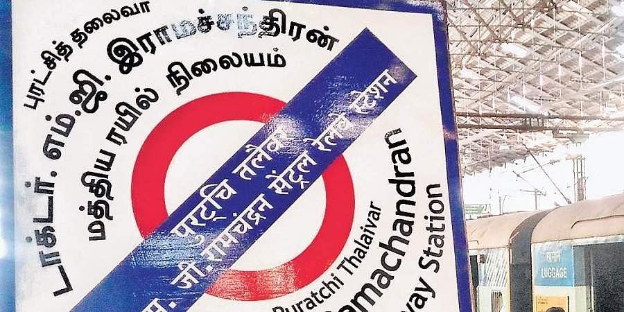 சென்னை சென்ட்ரல் ரயில் நிலையத்தின் முகப்புப் பகுதியில் "புரட்சித் தலைவர் டாக்டர் எம்.ஜி.ராமச்சந்திரன் மத்திய ரயில் நிலையம்" என்று பெயர் பலகை வைக்கும் பணி வேகமாக நடைபெற்று வருகிறது.