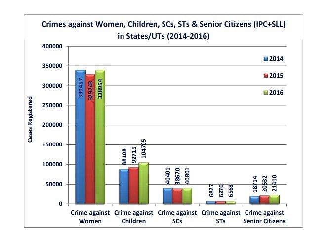 கடந்த 2013ம் ஆண்டு முதல் பெண்கள் மற்றும் குழந்தைகளுக்கு எதிராக பதிவு செய்யப்பட்ட வழக்குகளின் எண்ணிக்கை குறித்து தேசிய குற்றவியல் அமைப்பு வெளியிட்டுள்ள அறிக்கையின்படி, பெண்களுக்கு எதிராக 2014ம் ஆண்டு 3.39 லட்சம் வழக்குகளும், 2015ம் ஆண்டு 3.29 லட்சம் வழக்குகளும், 2016ம் ஆண்டு 3.38 லட்சம் வழக்குகளும் பதிவு செய்யப்பட்டுள்ளன. அதேபோன்று, குழந்தைகளுக்கு எதிராக 2014ல் 88,108 வழக்குகள், 2015ல் 92,715 வழக்குகள், 2016ல் 1,04,705 வழக்குகள் பதிவு செய்யப்பட்டுள்ளன. இவற்றில் குழந்தைகள் கடத்தல் வழக்குகள் 52.3%, பாலியல் துன்புறுத்தல் & வன்கொடுமை தொடர்பானவை 34.4% ஆகும்.
