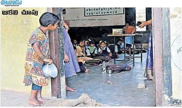 தெலங்கானா மாநிலத்தின் தெலுங்கு செய்தித்தாளான ஈநாடு நாளேட்டில் கடந்த வாரம் ஒரு புகைப்படம் வெளியானது. அந்தப் புகைப்படத்தை அவுலா ஸ்ரீநிவாஸ் என்பவர் எடுத்திருந்தார். அப்புகைப்படத்தில் மோத்தி திவ்யா என்று சிறுமி கையில் ஒரு பாத்திரத்துடன் வகுப்பறைக்கு வெளியே நின்றவாறு உள்ளே நடக்கும் வகுப்பை ஆர்வத்துடன் கவனித்துக் கொண்டிருப்பார்.