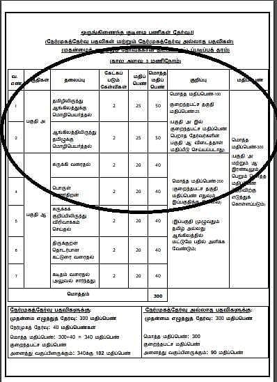 முதன்மை எழுத்துத் தேர்விலும், தமிழுக்கும், தமிழகத்தின் வரலாறு, பண்பாடு மற்றும் பாரம்பரியம் ஆகியவற்றிற்கும் முக்கியத்துவம் தரும் வகையில் தமிழர் நாகரீகத்தின் தோற்றம் மற்றும் வளர்ச்சி, சங்க கால இலக்கியம், தமிழகத்தின் இசைப் பாரம்பரியம், நாடகக் கலை, பகுத்தறிவு இயக்கம், சமூக சீர்திருத்த இயக்கங்கள், பெண்ணியம் மற்றும் தற்கால தமிழ் மொழி குறித்த பாடத்திட்டமாக மாற்றப்பட்டுள்ளது.