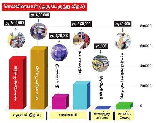 50 சதவீத இருக்கை: கரோனா தடுப்பு நடவடிக்கையாக தனி நபா் இடைவெளியைக் கடைப்பிடிக்க பேருந்துகளில் இருக்கைகளை பாதியாக குறைத்து இயக்குவதற்குத் தயாராக உள்ளோம். ஆனால் அதில் வருமானம் குறைவது, பேருந்தை மாற்றியமைப்பதற்கான செலவு உள்ளிட்ட பெரும் சவால்கள் உள்ளன. இதனால் கட்டணத்தை உயா்த்த வேண்டிய கட்டாயம் ஏற்படும். இப்படி பல்வேறு சிக்கல்கள் உள்ளன.