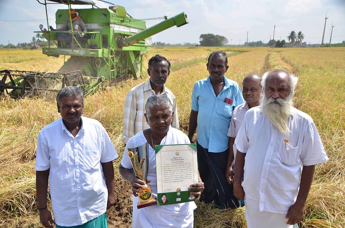"கடந்த 2018 ஆம் ஆண்டில் ஒரு ஏக்கரில் 1,875 கிலோ கிராம் நெல்மணிகள் மகசூல் கிடைத்தது. அதனால், பாரம்பரிய முறையில் நெல் விவசாயத்துக்கான 2018-19 ஆம் ஆண்டுக்கான தமிழக அரசின் முதல் பரிசு கிடைத்தது.
