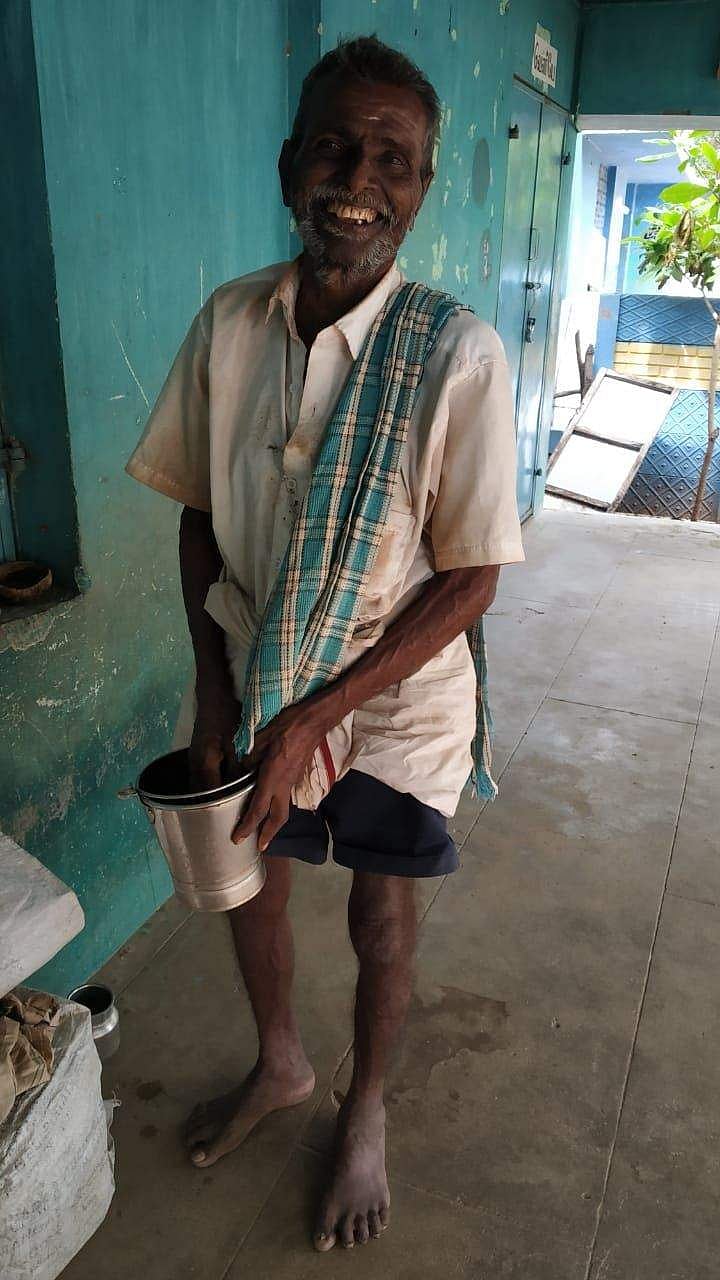 கிடைத்ததை உண்டு, நினைவில் உள்ளவற்றைப் பாடி மகிழ்ச்சியாய் இருக்கிறார்.