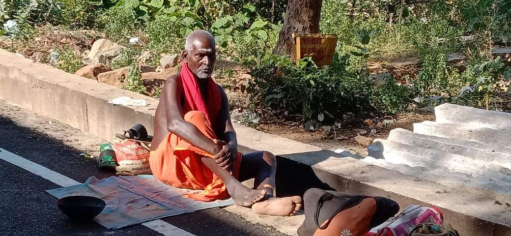 பாபநாசத்தில் தானமிடுவோருக்காகக் காத்திருக்கும் சந்நியாசி முதியவர்