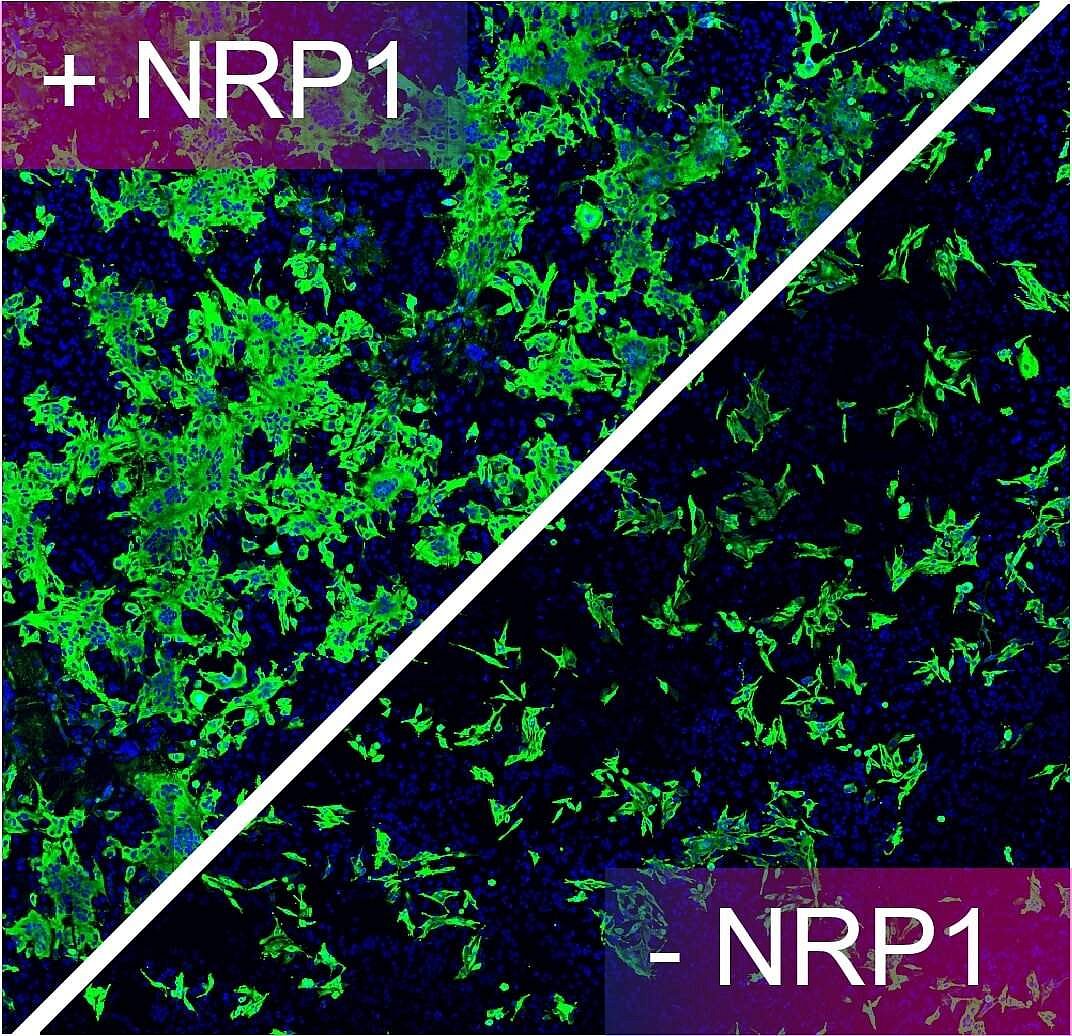 அவை செல் மேற்பரப்பில் நியூரோபிலின்களுடன் பிணைக்கப்படுகின்றன. கரோனா மற்றும் இயற்கையாக நிகழும் வைரஸைப் பிரதிபலிக்கும் செயற்கை வைரஸ்களுடன் இணைந்து, ஆய்வகத்தில் வளர்க்கப்பட்ட செல்களைப் பயன்படுத்தும் சோதனைகள், ஏஸ்2 முன்னிலையில் நியூரோபிலின் -1 நோய்த்தொற்றை ஊக்குவிக்க முடியும் என்பதைக் குறிக்கிறது. எதிர் உயிரிகள் கொண்ட நியூரோபிலின் -1 ஐ குறிப்பாக தடுப்பதன் மூலம், தொற்று அடக்கப்பட்டது என்றும் கருதலாம்.