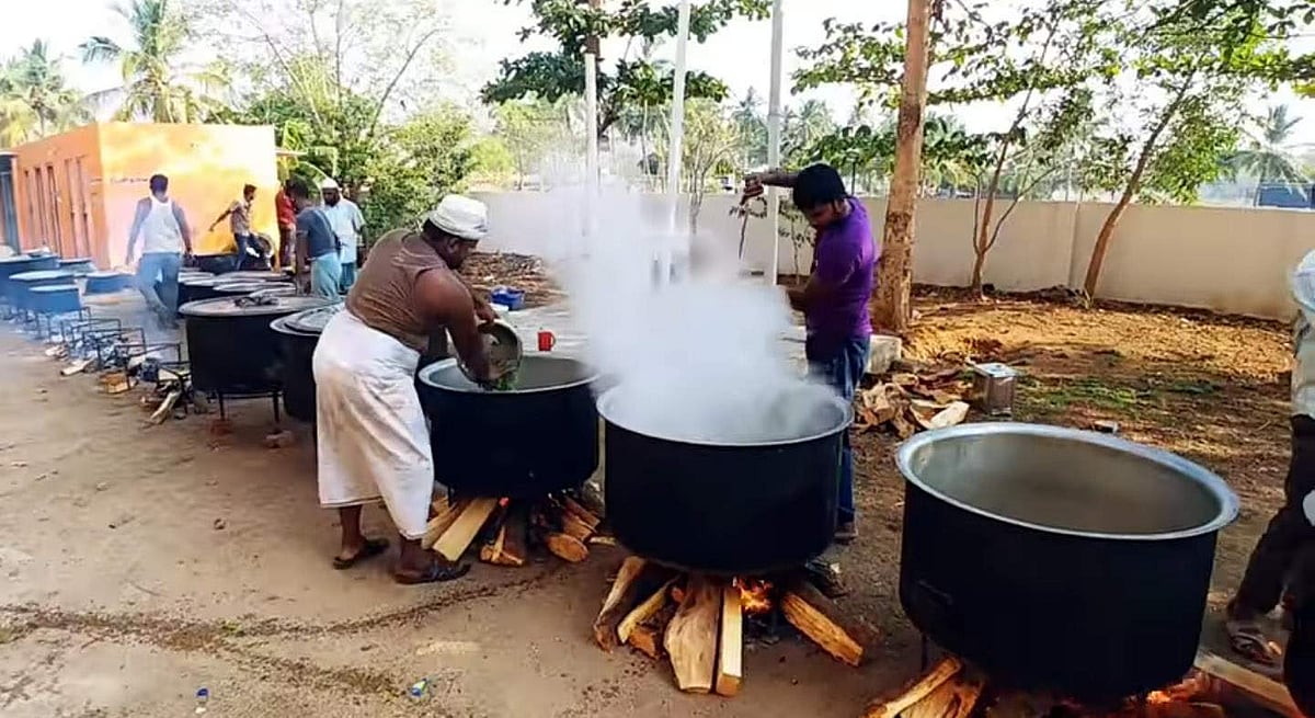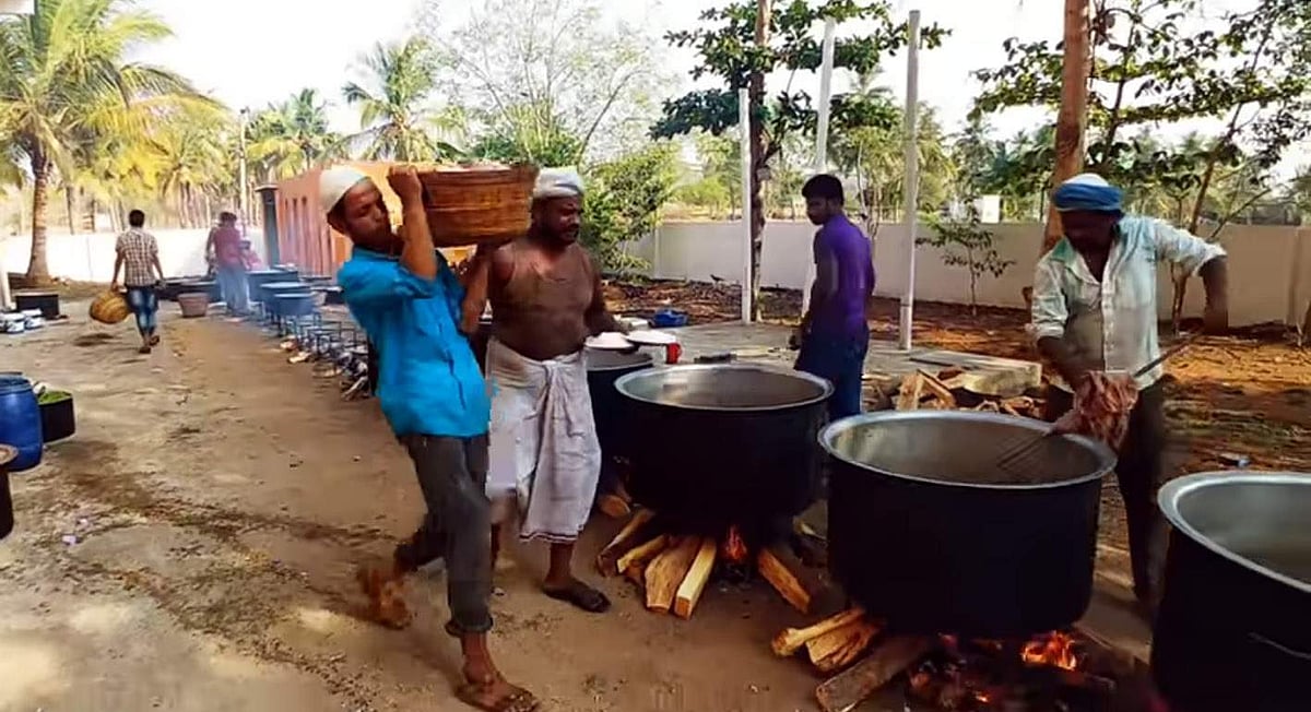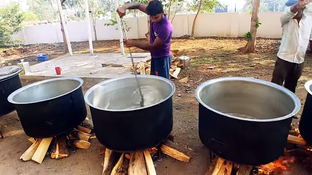 முன்னதாக மற்றொரு பாத்திரத்தில் கழுவிய அரிசியை போட்டு அரை வேக்காடு வேக வைக்க வேண்டும். பிறகு ஏற்கனவே மசாலா, மட்டன் ஆகியவை வேகவைக்கப்பட்ட பாத்திரத்தில் அரை வேக்காடு அரிசியை போட்டு நன்றாக கிளறி விட்டு தட்டு போட்டு மூட வேண்டும். அதன் மூடப்பட்ட தட்டு மீது நெருப்பு துண்டுகளை போட்டு சுமார் 15லிருந்து 20 நிமிடங்கள் வரை தம் கட்ட வேண்டும். அதன் பிறகு பிரியாணி உண்பதற்கு தயாராகி விடும் என்று பக்காத்தி பாபு கூறினார்.