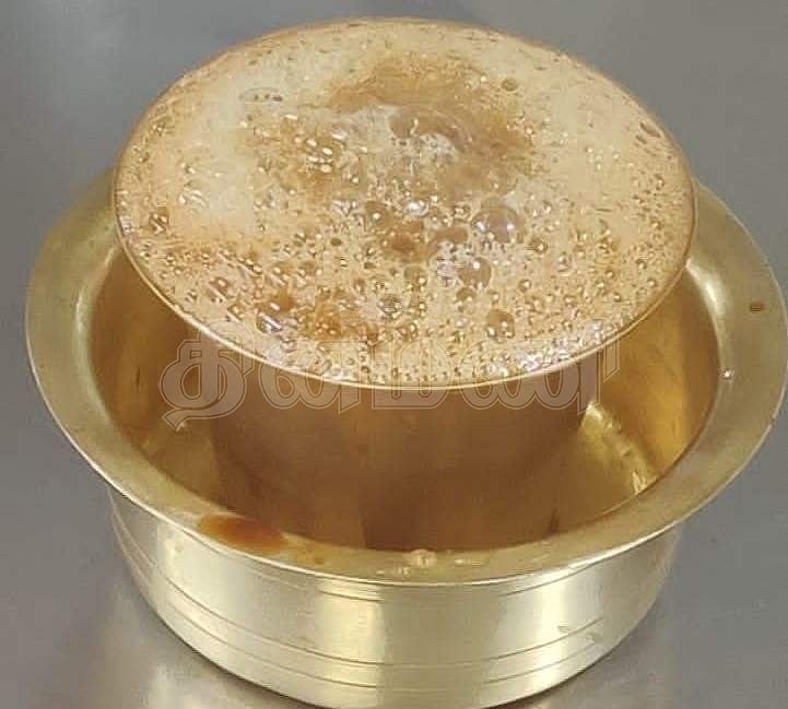 பாரம்பரியமான பித்தளை டம்ளரில் கும்பகோணம் டிகிரி காபி