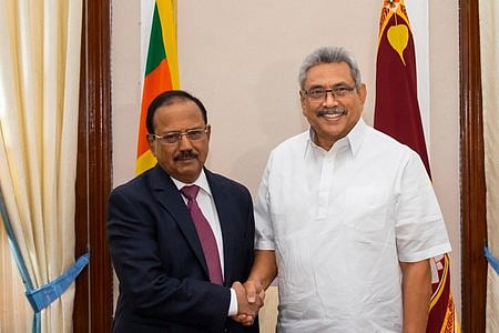 இந்திய தேசிய பாதுகாப்பு ஆலோசகர் அஜித் தோவல் உடன் இலங்கை அதிபர் கோத்தபய ராஜபட்ச (கோப்புப்படம்)