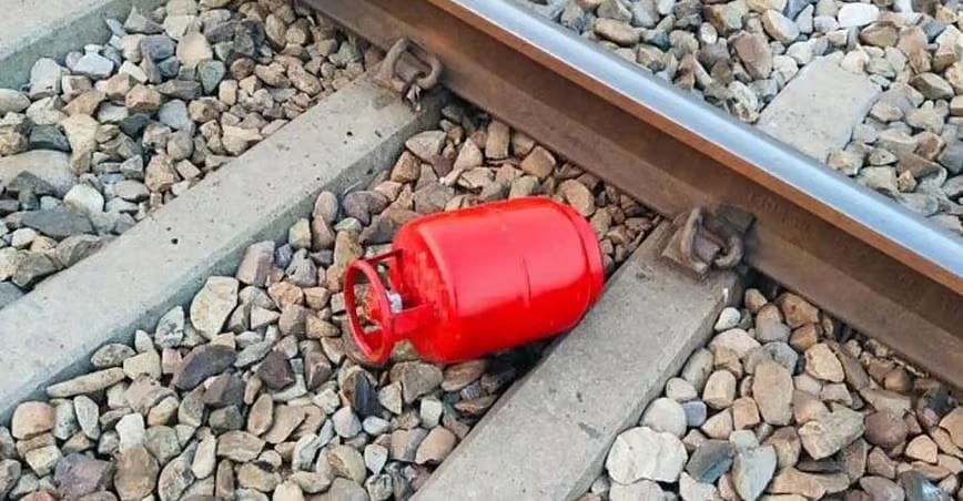 தண்டவாளத்தில் கிடந்த சிலிண்டர்.