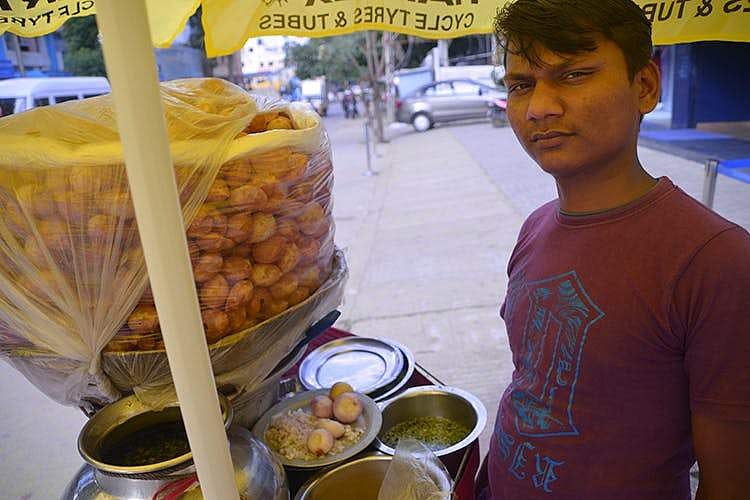 பூரியில் பானி (ரசம் போன்ற ஒரு கலவை நீர்) ஊற்றித் தர, அதை ஒரே வாயில் சாப்பிட்டு முடிப்பார் வாடிக்கையாளர். ஒவ்வொருவருக்கும் பம்பரமாக இந்த கலவையை செய்து தர, வியாபாரம் அமோகமாக நடக்கும்.