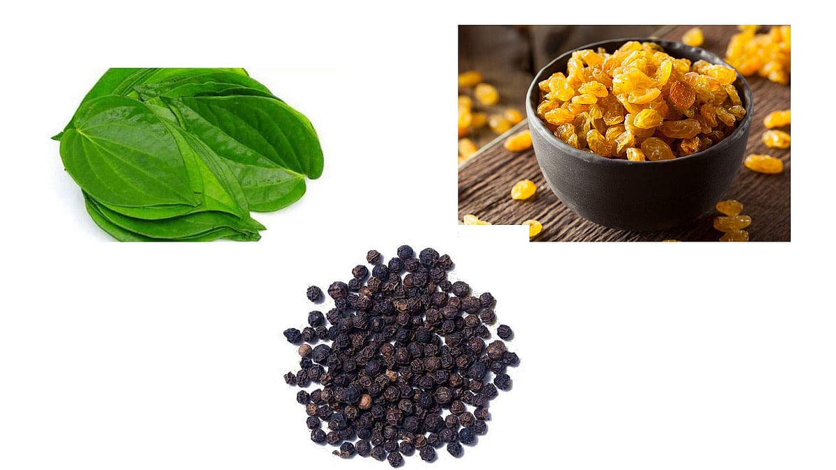 இரவு படுக்கப் போகும் முன் வெற்றிலை (2), மிளகு (2), உலர் திராட்சை (5) இவை மூன்றையும் சேர்த்து தினமும் படுக்கப் போகும் முன் வாயில் போட்டு மென்று தின்று முழுங்கவும்.