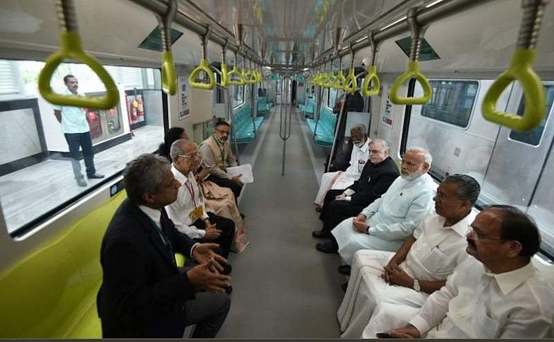 அவருடன், கேரள ஆளுநர் பி. சதாசிவம், முதல்வர் பிரனாயி விஜயன், மத்திய அமைச்சர் வெங்கையா நாயுடு, மெட்ரோ மேன் என்று அழைக்கப்படும் ஈ. ஸ்ரீதரன் உள்ளிட்டோரும் மெட்ரோ ரயிலில் பயணித்தனர்.