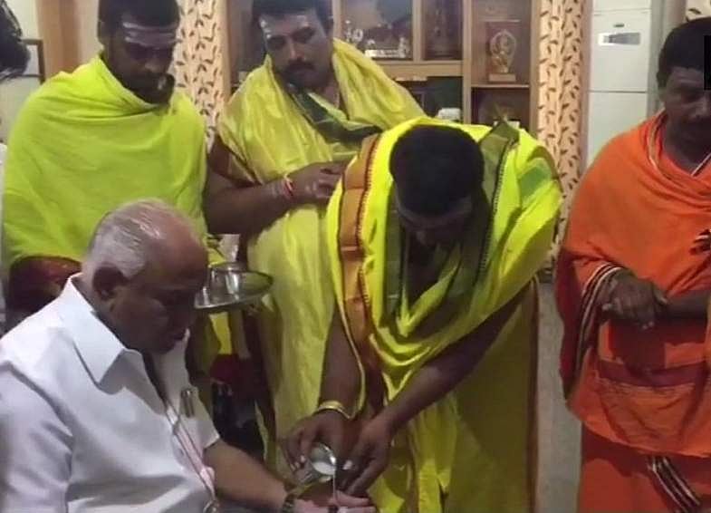 பாஜக முதல்வர் வேட்பாளர் எடியூரப்பா, வீட்டின் அருகில் உள்ள கோயில் ஒன்றில் சிறப்பு பூஜை நடத்தினார்.