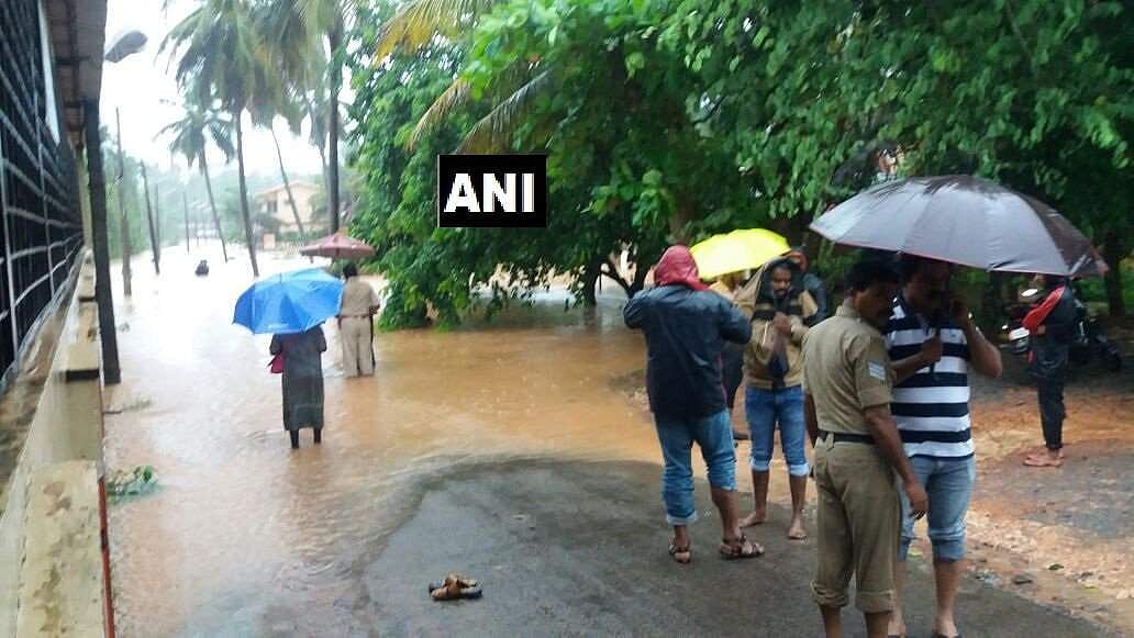 மங்களூருவில் செவ்வாய்கிழமை பெய்து வரும் கனமழை காரணமாக சாலைகளில் வெள்ளம் சூழ்ந்துள்ளது.