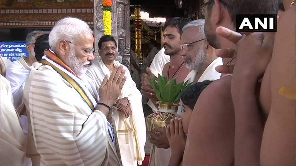 இன்று காலை கொச்சியில் இருந்து சிறப்பு ஹெலிகாப்டர் மூலம் குருவாயூர் வந்த பிரதமர் மோடி, கோயிலுக்குச் சென்று கிருஷ்ணரை தரிசனம் செய்தார்.