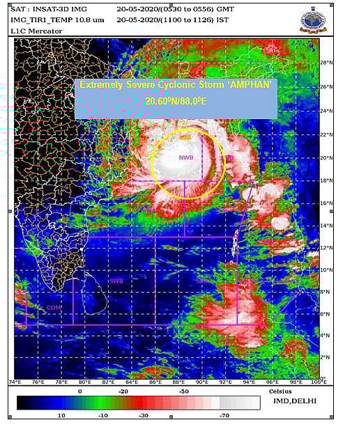 உம்பன் புயல் மேற்கு வங்கம் - வங்கதேசம் கடற்கரைக்கு இடையே இன்று பிற்பகலில் கரையைக் கடக்கும் என்று இந்திய வானிலை ஆய்வு மையம் தெரிவித்துள்ளது.