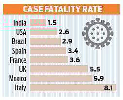 கடந்த வார இறுதி வரையிலான நிலவரப்படி, இந்தியாவில் சுமார் 1.17 லட்சம் பேர் கரோனாவால் பலியாகியுள்ளனர். அதேவேளையில் கரோனா பாதித்தவர்களின் எண்ணிக்கை 77.61 லட்சமாக உள்ளது. அப்படியானால் கரோனா பாதித்தவர்களில் பலியாகும் விகிதம் என்பது 1.5 சதவீதமாக உள்ளது. இது உலகளவில் மிக மிகக் குறைவான விகிதமாகும்.