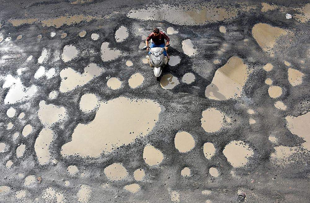குஜராத்தில் கனமழை பெய்து வருவதால், சாலைகள் பலவும் பல்லாங்குழியாகிப்போயின.