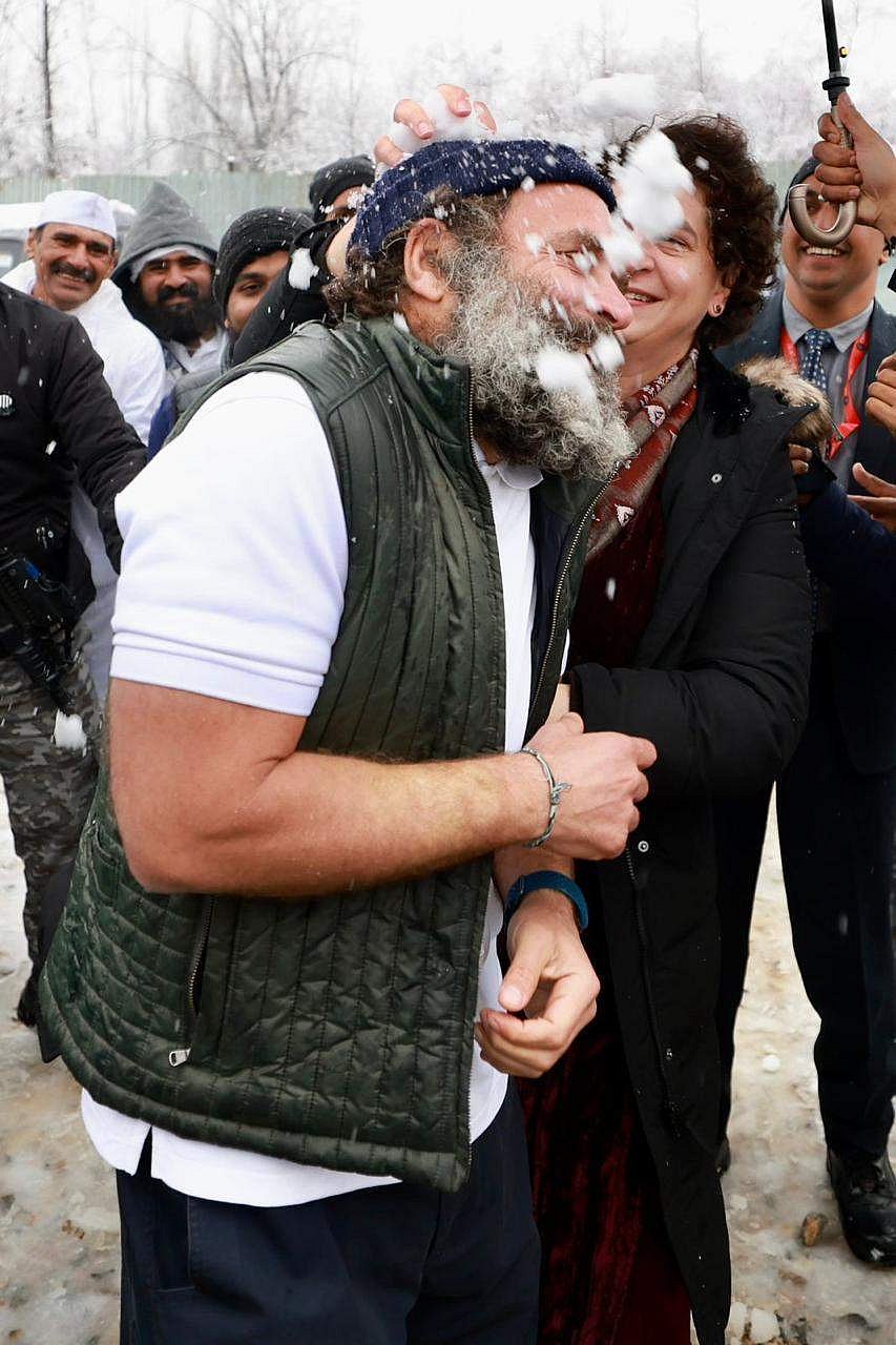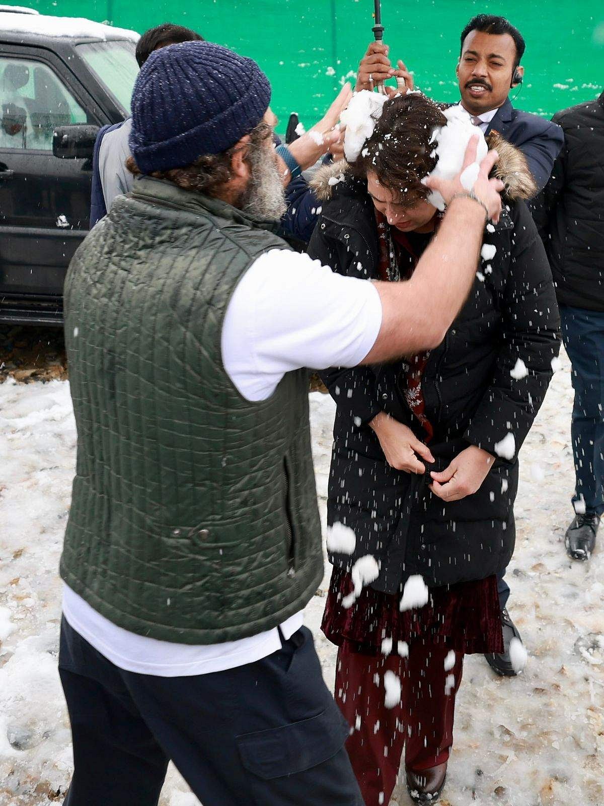 நிகழ்ச்சி நிறைவுபெற்றதும், நடைப்பயணத்தில் தன்னுடன் இணைந்து கொண்ட சகோதரி பிரியங்கா காந்தி வத்ராவுடன் அவர் பனிக்கட்டிகளை வீசி எறிந்து செல்ல சண்டையில் ஈடுபட்டார்.