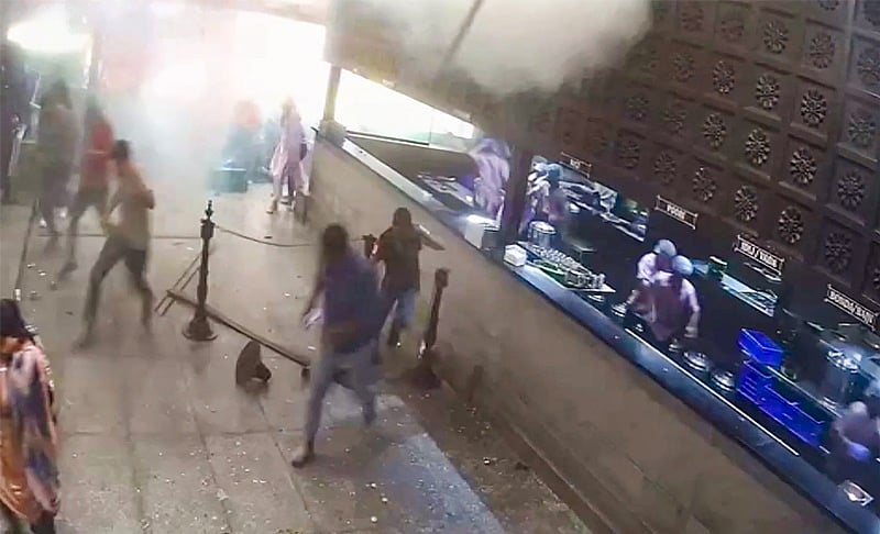 இந்த காட்சிகளில் பதிவாகியுள்ள குற்றவாளி, தலையில் வெள்ளை தொப்பி, கருப்பு பேன்ட், முகமூடி, கருப்பு மூக்குக்கண்ணாடி, கருப்பு காலணி ஆகியவற்றை அணிந்திருந்ததை போலீஸாா் தெளிவுபடுத்தியுள்ளனா். குண்டுவெடிப்புக்கு காரணமான அந்த நபரை பிடிக்க போலீஸாா் தீவிர தேடுதல் வேட்டையில் ஈடுபட்டுள்ளனா்.