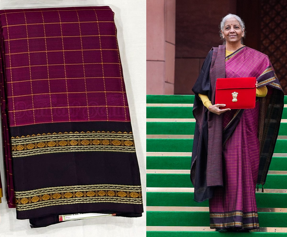பட்ஜெட் வாசித்தபோது மத்திய நிதியமைச்சர் நிர்மலா சீதாராமன் கட்டியிருந்த காஞ்சிபுரம் பட்டுப் புடவை மற்றும் பின்னணி பற்றி...