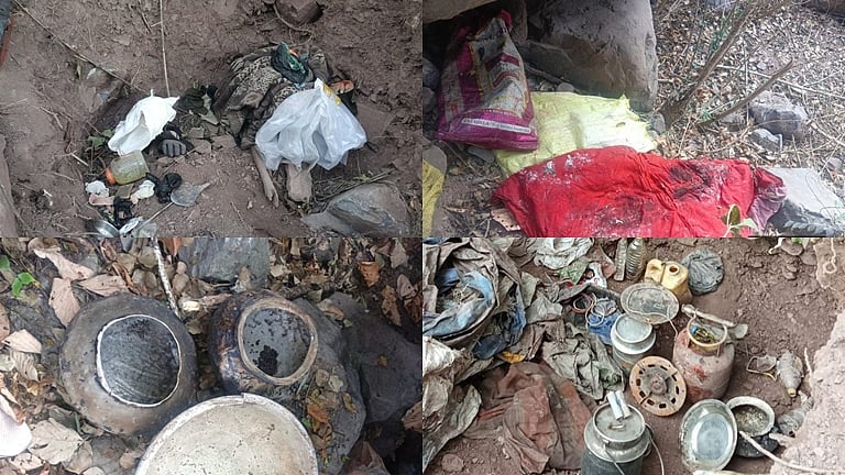 ஜம்மு - காஷ்மீரில் பயங்கரவாதிகளின் மறைவிடங்களில் நடத்தப்பட்ட சோதனையில் பல்வேறு பொருள்கள் கண்டெடுக்கப்பட்டன.