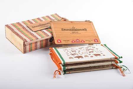 வடகிழக்கு இந்தியாவின் பொருளாதாரம் மற்றும் கலாசார வாழ்வின் முதுகெலும்பாக மூங்கில் உள்ளது. சாயமிடப்பட்ட பருத்தி நூல்கள் மற்றும் மெல்லிய மூங்கில் பட்டைகள் இதில் பயன்படுத்தப்பட்டுள்ளன. வெளிப்புற உறை, மேகாலயாவின் கையால் செய்யப்பட்ட காகிதம் மற்றும் புகையூட்டப்பட்ட மூங்கில்களால் அலங்கரிக்கப்பட்டுள்ளது. மேலும், உறை மற்றும் பெட்டியில் உள்ள காட்சி வடிவங்கள், அசாமிய கையெழுத்துப் பிரதி ஓவியங்கள், அப்பகுதியின் வளமான தாவரங்கள் மற்றும் விலங்கினங்களில் இருந்து உத்வேகம் பெறுவதைக் குறிக்கின்றன.