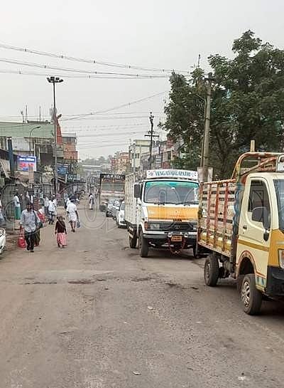 நீடாமங்கலம் ரயில்வேகேட் மூடப்பட்டபோது சாலையில் அணி வகுத்த வாகனங்கள்.