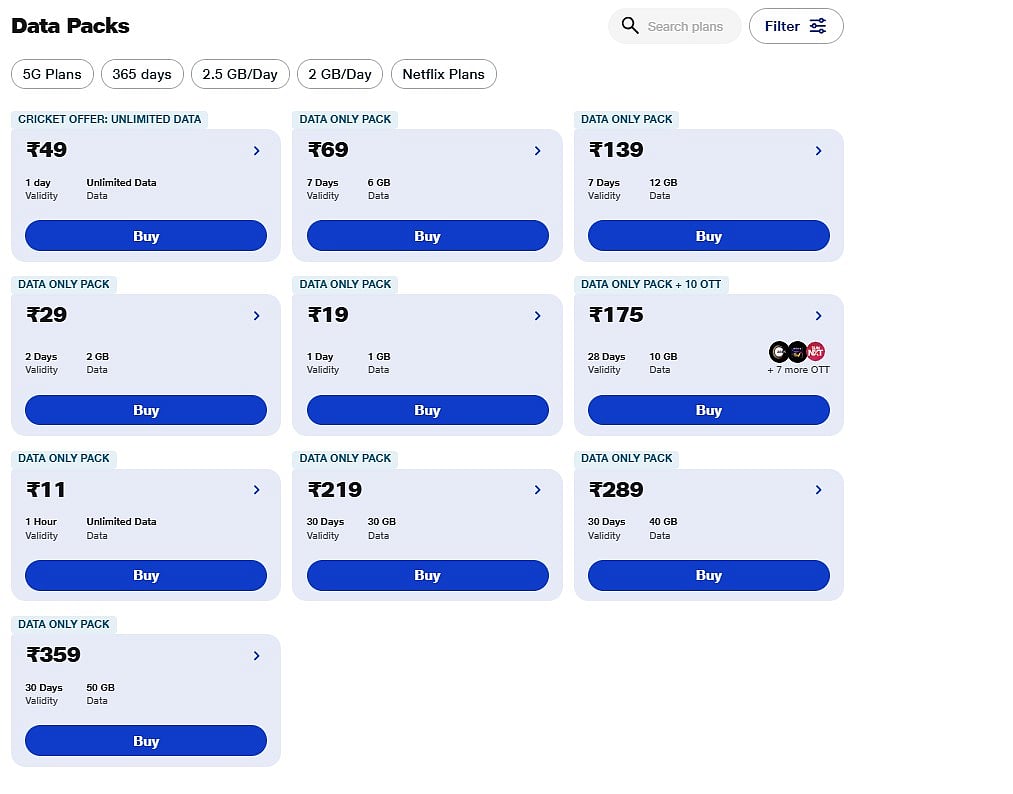 இதில் கொடுமை என்னவென்றால், ரூ.19, ரூ. 29 டேட்டா திட்டங்களுக்கு எல்லாம் ஒரு நாள், இரு நாள்கள் வேலிடிட்டி மட்டும்தான். இது தெரியாமல் ரீசார்ஜ் செய்தவர்கள் தலை காய வேண்டியதுதான்.