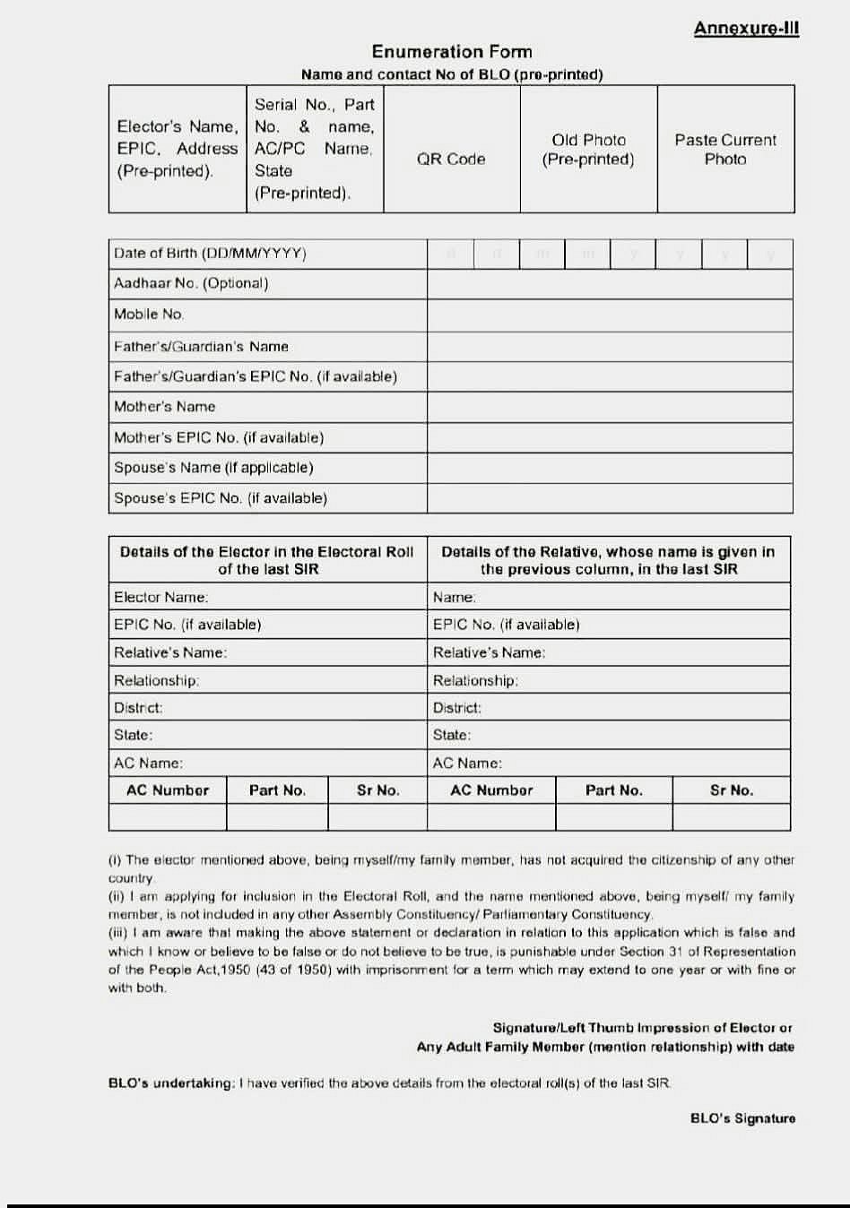 தேர்தல் ஆணையம் வழங்கும் எஸ்.ஐ.ஆர். படிவத்தில் என்ன இருக்கிறது? நிரப்புவது எப்படி?