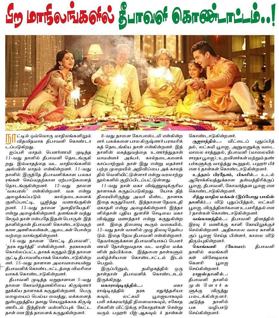 நாட்டில் ஒவ்வொரு மாநிலங்களிலும் விதவிதமாக தீபாவளி கொண்டாடப்படுகிறது. ஐப்பசி மாதம் பௌர்ணமி முடிந்த 11வது நாளில் தீபாவளி தொடங்குகிறது.