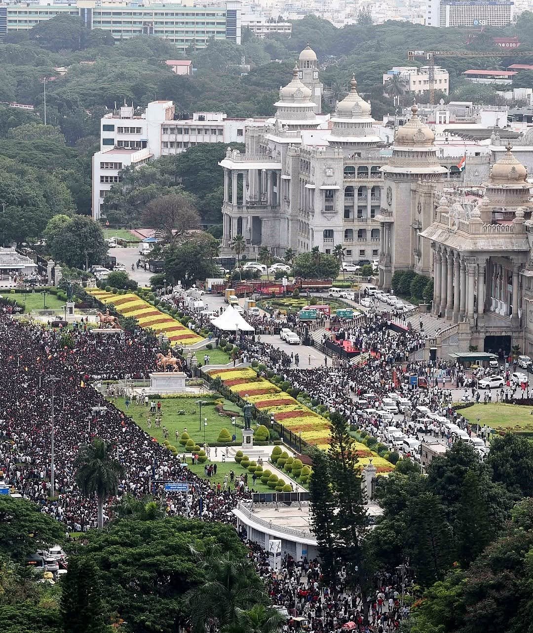 மாநகர் வீதிகளிலெல்லாம் மக்கள் திரளும் வேகத்தைப் பார்த்துவிட்டு, பேரணி எல்லாம் இல்லை, பெங்களூரு திடலுக்கு வரச்சொல்லி அறிவித்திருக்கின்றனர். இவையெல்லாம் மக்களைச் சென்றடையாத நிலையில். சாலையோரங்களில் நின்று பேரணியைப் பார்த்துவிட்டுச் செல்ல நினைத்தவர்கள்கூட பெருங்கூட்டமாக சின்னசாமி அரங்கத்தை நோக்கிப் படையெடுத்தனர்.
